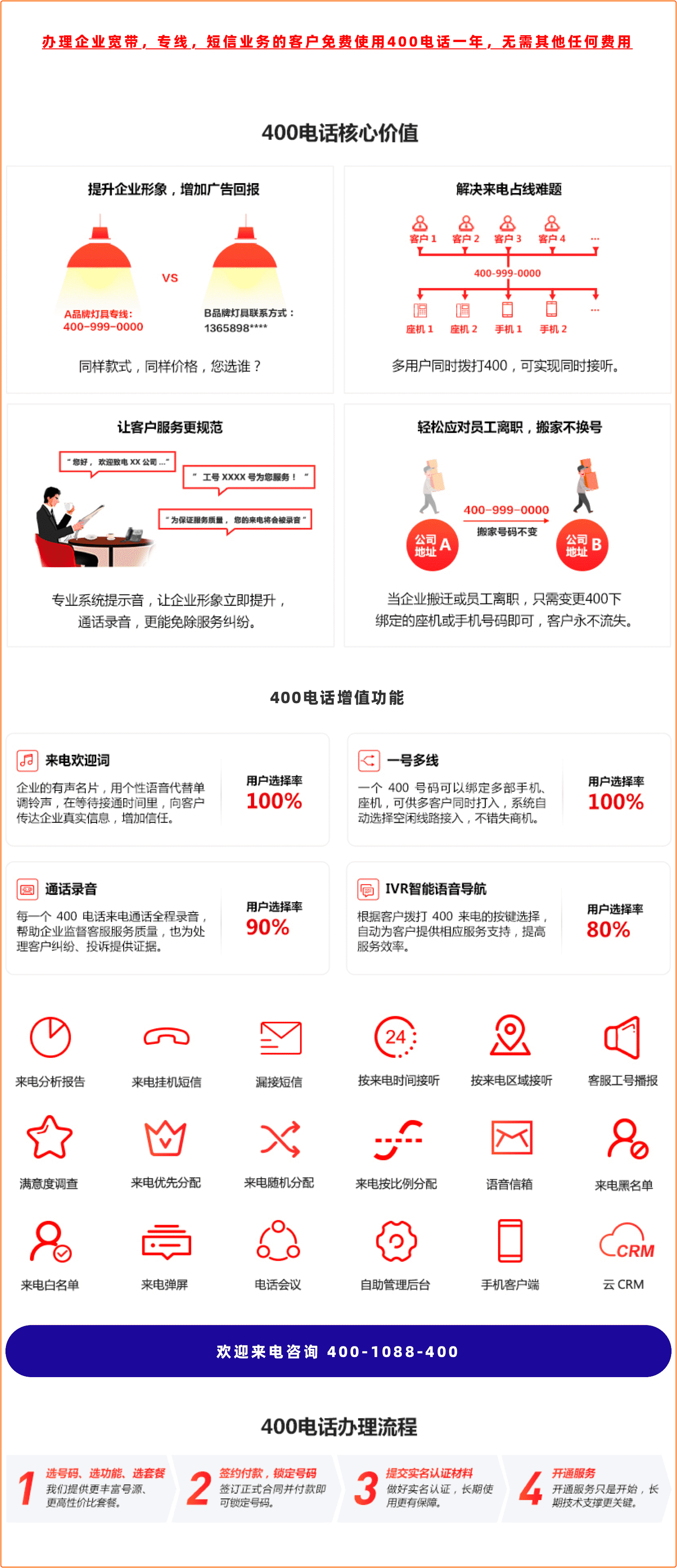 答:400电话可以提升企业形象、让客户更容易记住、提升企业竞争力