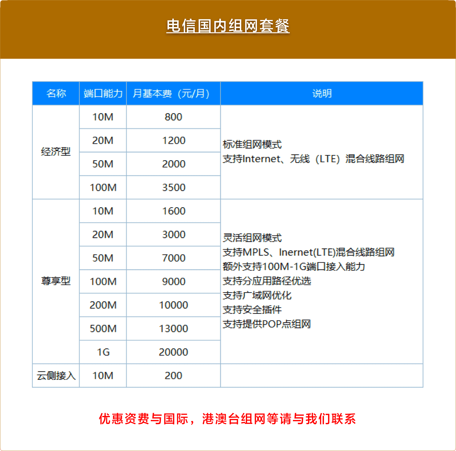 主要用于企业通过SD-WAN技术组建虚拟专网,政企用户可购买SD-WAN服务,在本地,跨省实现企业总部与分支,分支与分支之间三层组网需求,并能承载私网路由。在政企分支组网,SD-WAN的网络架构可基于MPLS VPN,互联网线路和电信4G LTE(支持5G演进)的灵活混合组网。在多种广域网接入方式并存时,需要根据应用、链路质量、管理等需求进行灵活的调整。