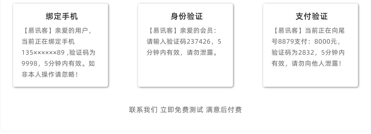 答:我们有多条国内最稳定的短信通道,保障您的每一条短信能够及时无误发送到接收方。由于运营商原因或手机无信号、黑名单等造成收不到情况,可联系客服处理。收不到不收取费用!